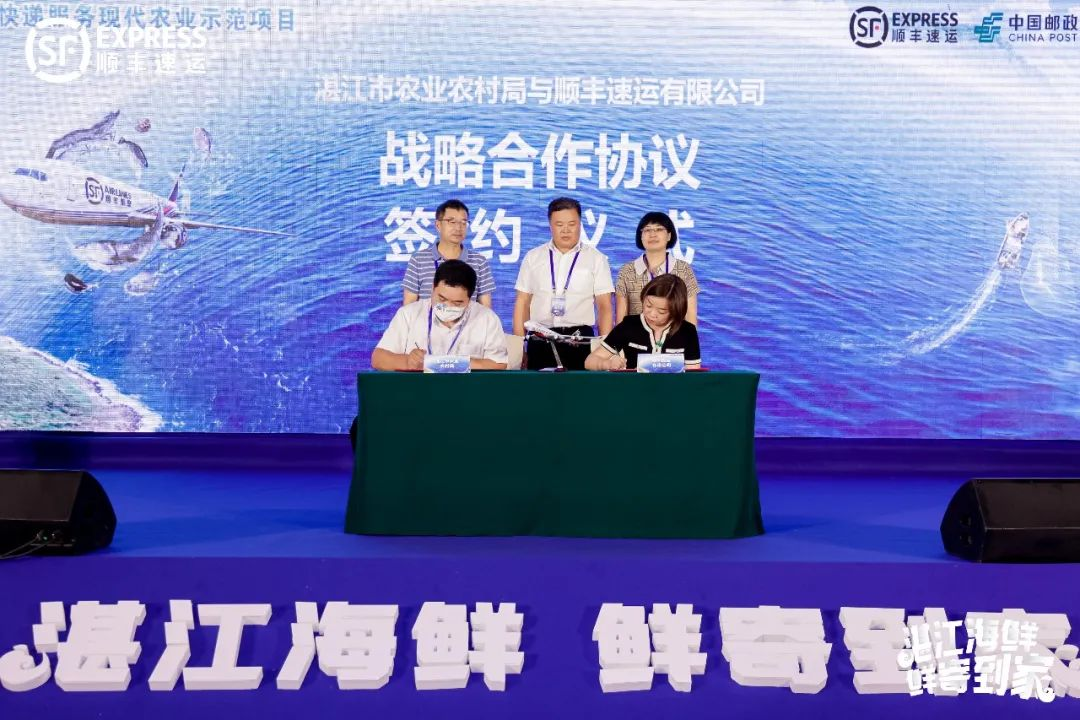会上,湛江市农村农业局与顺丰速运有限公司就湛江水产寄递服务资源对接签订战略合作协议,并现场举办湛江水产便民寄递服务标准化网点揭牌仪式。