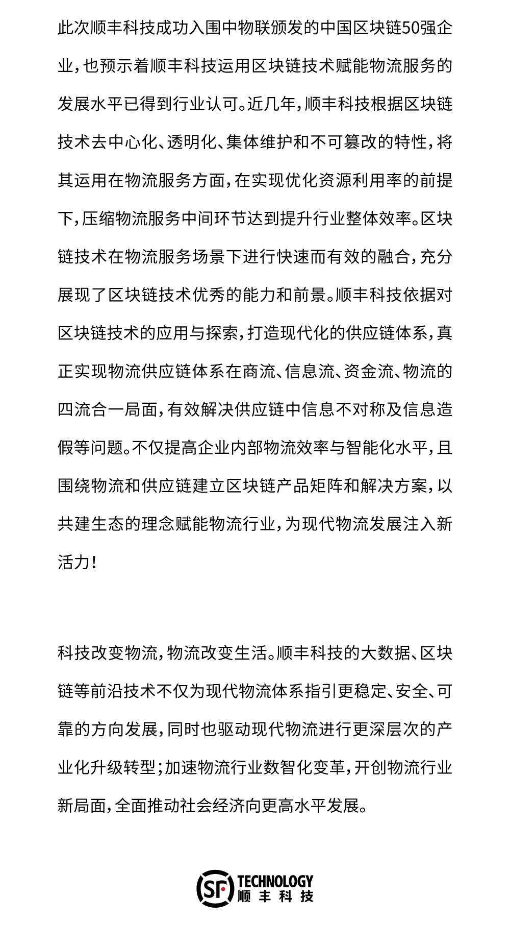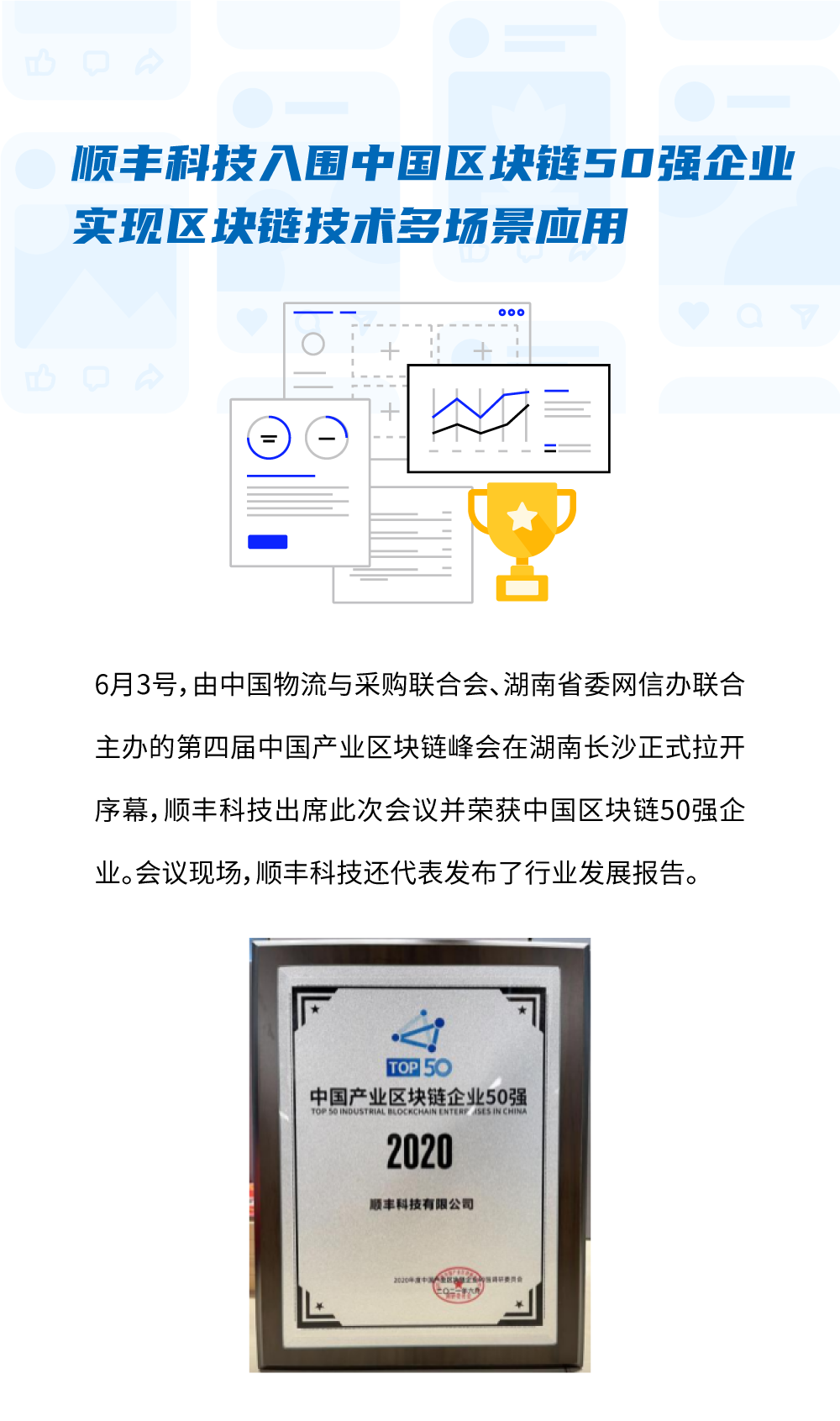 顺丰科技入围中国区块链50强企业,实现区块链技术多场景应用